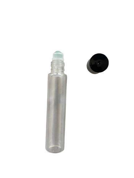 Bote mini roll-on para desodorante fabricado en cristal transparente, práctico y ligero. Ideal para desodorantes líquidos, perfumes naturales y formatos de viaje.