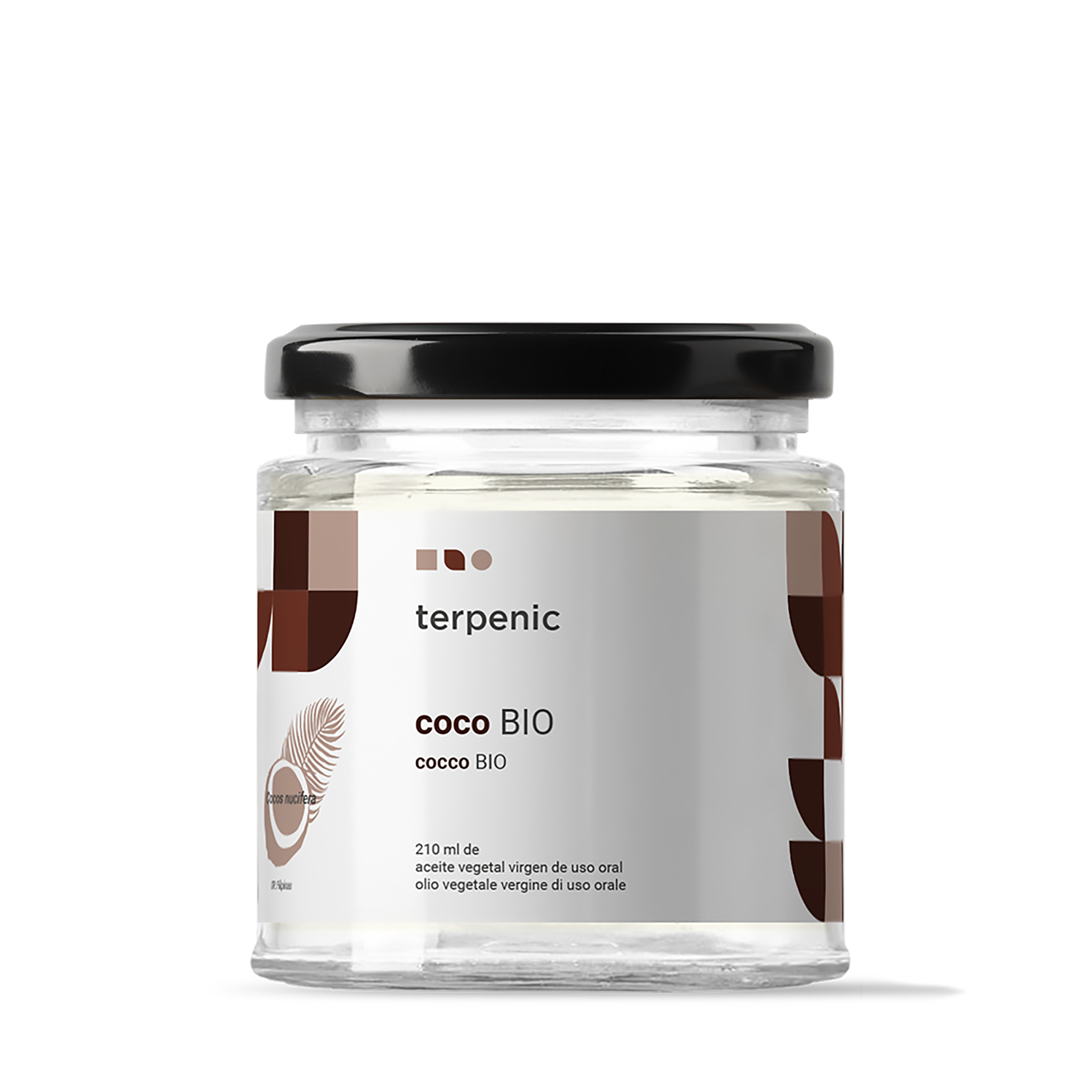 Aceite vegetal virgen de coco obtenido por primera presión en frío de la pulpa seca del fruto de la palmera cocotera, de origen ecológico. Indicado para uso cosmético en pieles sensibles o muy secas, también para el cabello. Compatible con mezclas de aceites esenciales y apto para uso alimentario. Nutritivo y protector, ideal como aceite base y calmante de irritaciones.