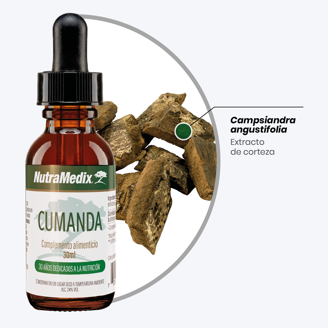 Las gotas de Cumanda de se basan en un extracto obtenido de la corteza del árbol sudamericano Campsiandra angustifolia. Este extracto ha sido utilizado tradicionalmente por los indígenas desde hace siglos para las afecciones relacionadas con patógenos, principalmente de naturaleza fúngica y bacteriana. Cumanda se utiliza a menudo junto con Samento o Banderol.