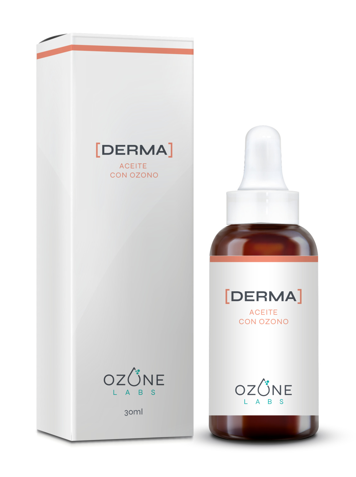 Aceite ozonizado “Derma”, formulado para el cuidado de pieles agredidas o sensibilizadas. Su base es aceite de girasol ozonizado, al que se añaden aceite esencial de mandarina, aceite esencial de lavanda y aceite esencial de espliego, creando un cosmético natural, vegano y de fabricación española. Su composición es de 70% de aceite de ozono y un 30% de aceites esenciales.
