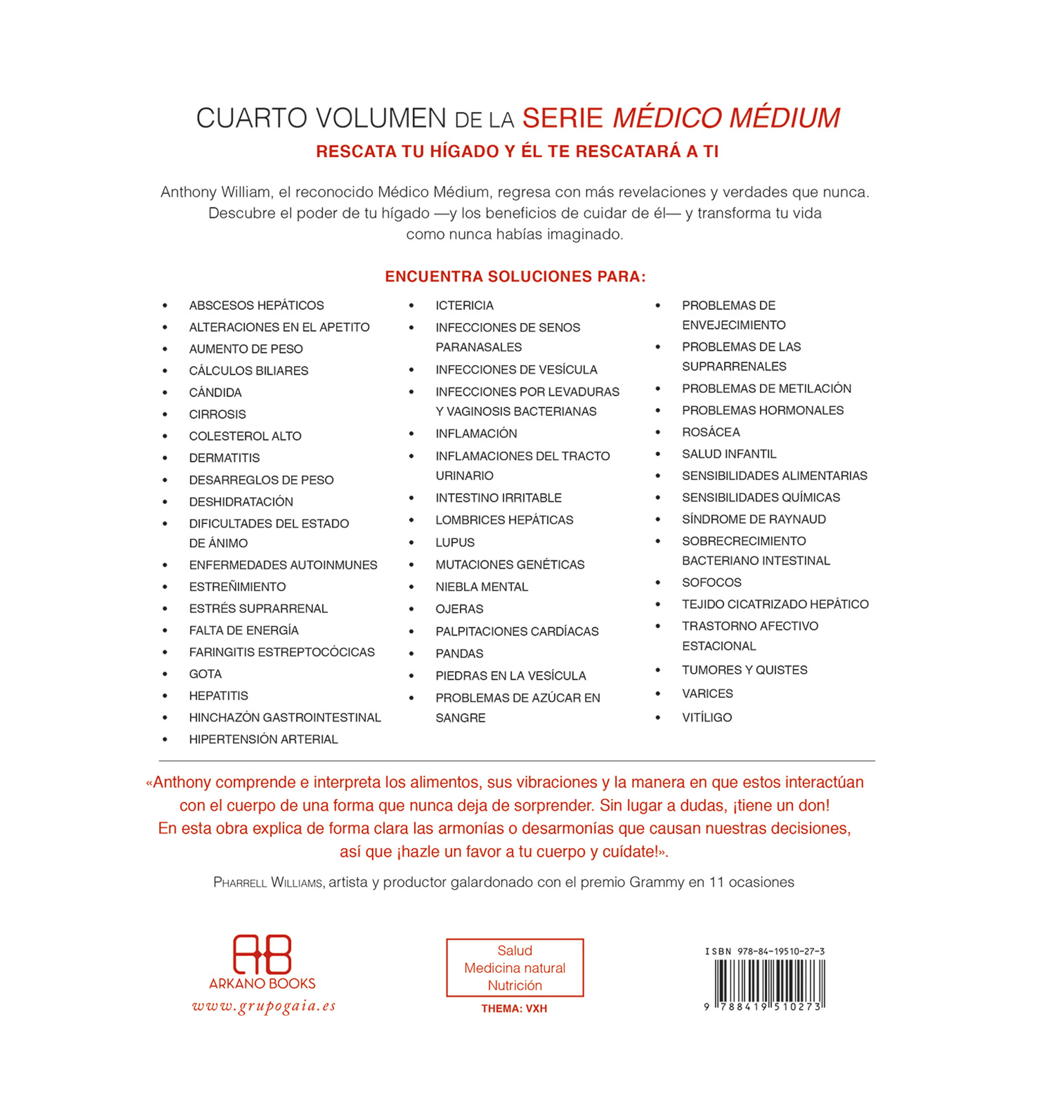 Anthony William, ofrece protocolos de desintoxicación, recomendaciones alimentarias y explicaciones detalladas sobre síntomas relacionados con el hígado según la visión del autor.
