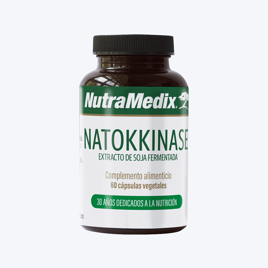 Nattokinase apoya la salud cardiovascular. La nattokinasa es una enzima que se obtiene del natto, un alimento único hecho de soja cocida fermentada con Bacillus subtilis, y es un subproducto del proceso de fermentación. El suplemento de Nattokinasa de NutraMedix ayudar a apoyar la actividad fibrinolítica saludable, ayudar a mantener la circulación normal y ayudar a mantener la presión arterial dentro del rango normal. También puede ayudar con el soporte de una respuesta inflamatoria saludable. ¿Qué es la Nattokinasa? La nattokinasa es una enzima derivada del natto, un plato tradicional japonés de soja fermentada. El natto contiene muchos nutrientes, incluyendo calcio, cobre, hierro, magnesio, potasio, vitamina C y zinc. La enzima nattokinasa se produce naturalmente durante el proceso de fermentación del natto, el cual utiliza Bacillus subtilis.